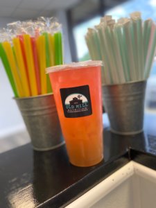 A: “Old Mill Nutrition serves healthy meal replacement shakes, with protein, low carb, low sugar, low fat. We also offer loaded teas; so our teas are both green with ginseng and guarana, they’re topped with a liquid aloe for absorption, digestion, these are more to sustain energy. Personally for me, I had to stop doing coffee so this replaced my coffee but it’s also an essentially better option than soda or Red Bull.”